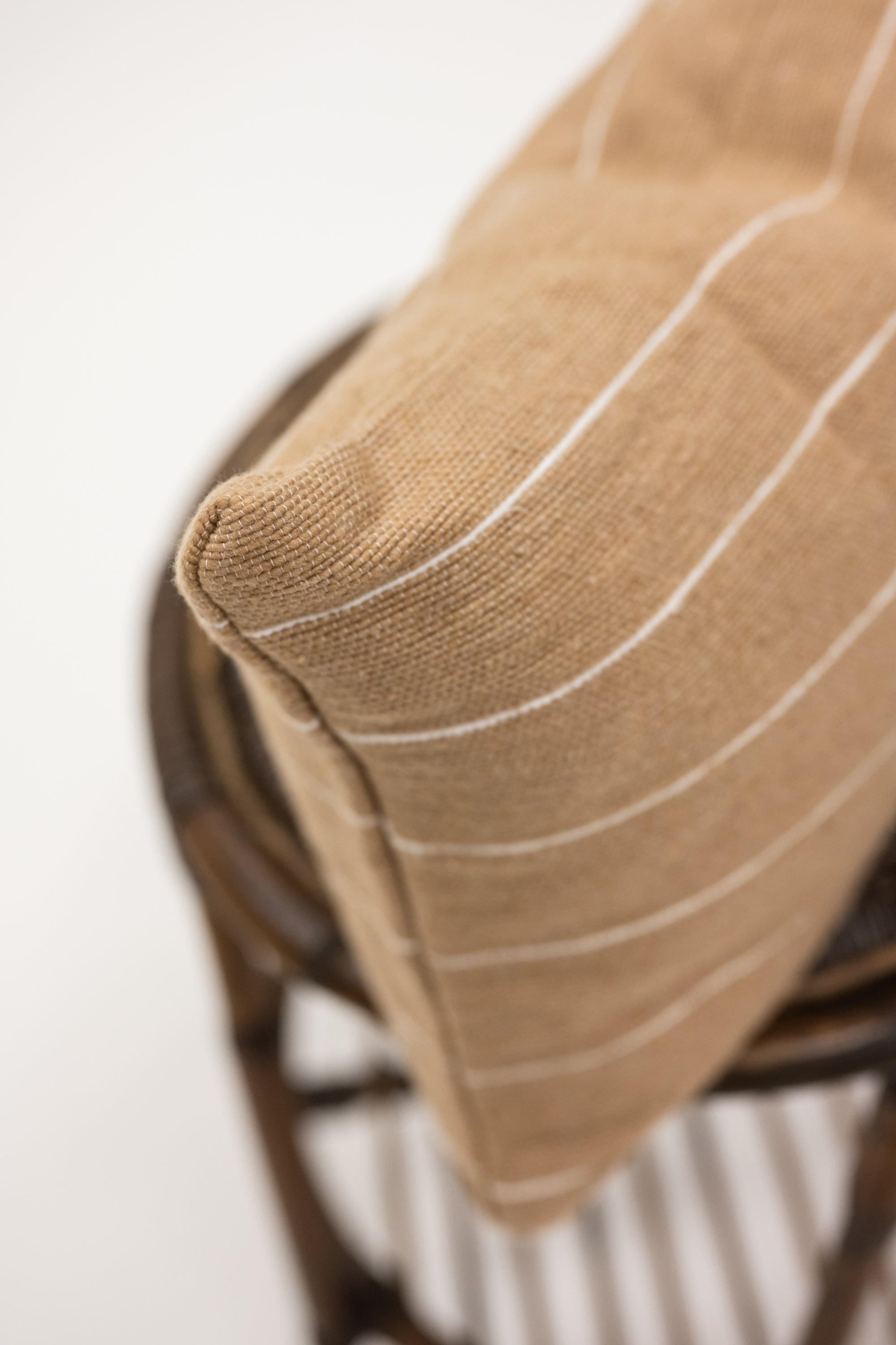 A hard-woven cotton cover in a light tan with white stripes. Pattern is two sided.
