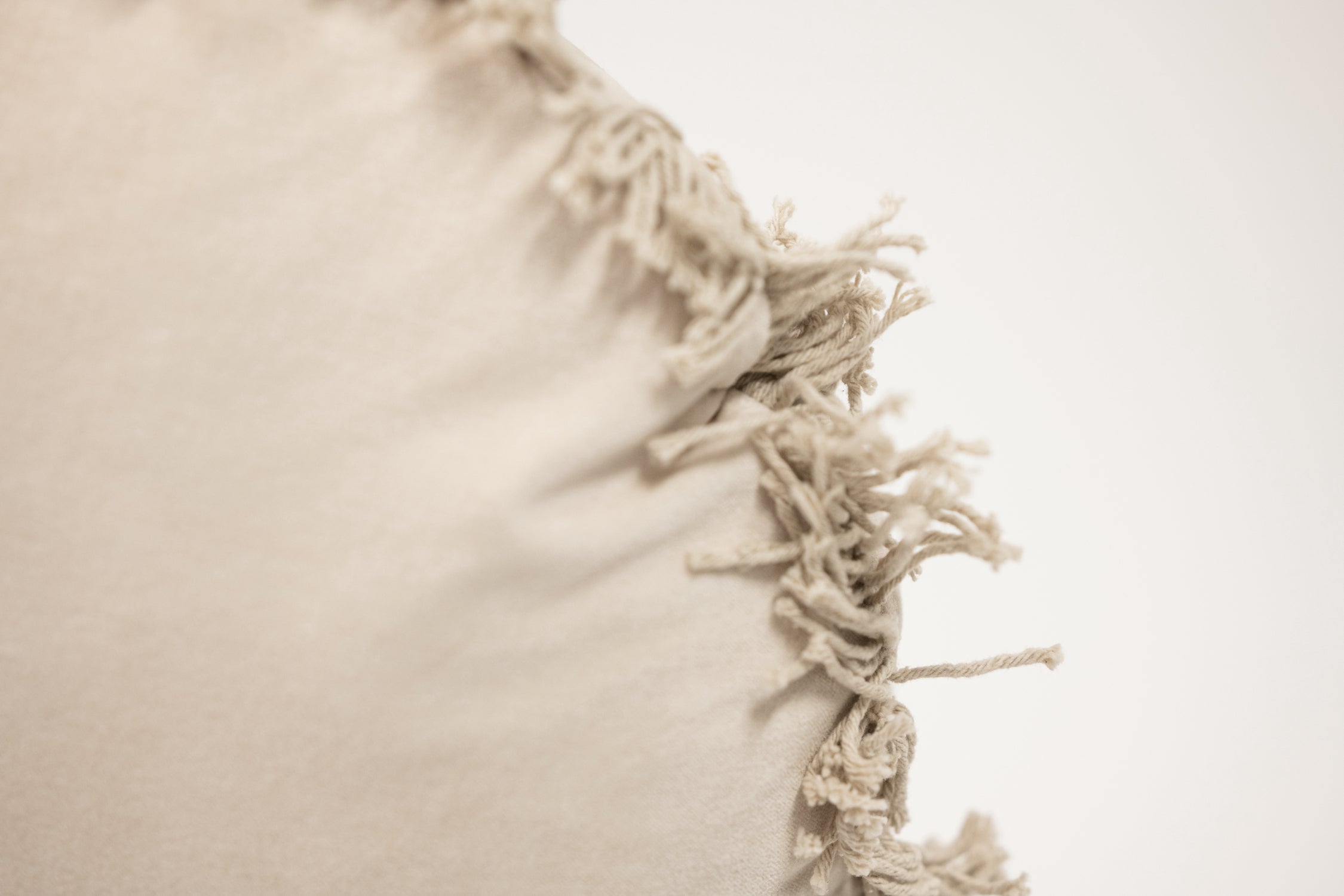Our round cream pillow is made from a beautiful cotton velvet pillow that has a vintage feel, complete with a fringe edging. Pillow zips closed, allowing for the insert to be removed for easier cleaning. This throw pillow looks beautiful on sofas, chairs and beds.