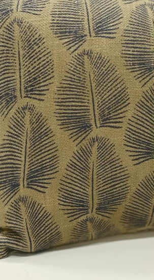 One sided design, block printed pattern from India. A dark brown with black plume pattern.