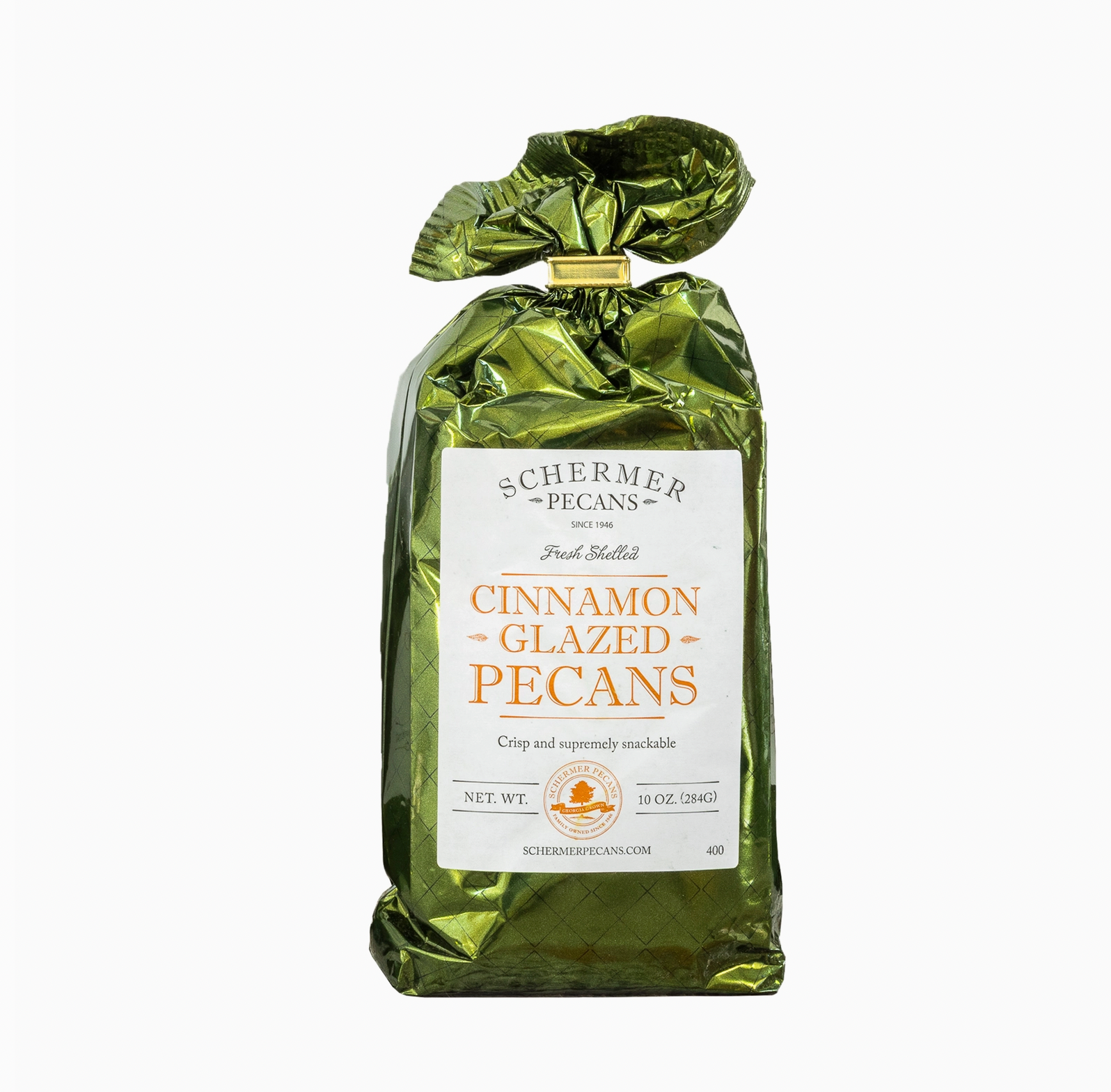 These cinnamon glazed Schermer Pecans have been grown in Georgia, freshly shelled and roasted in salt. Then glazed in a blend of cinnamon and vanilla in giant copper cauldrons.