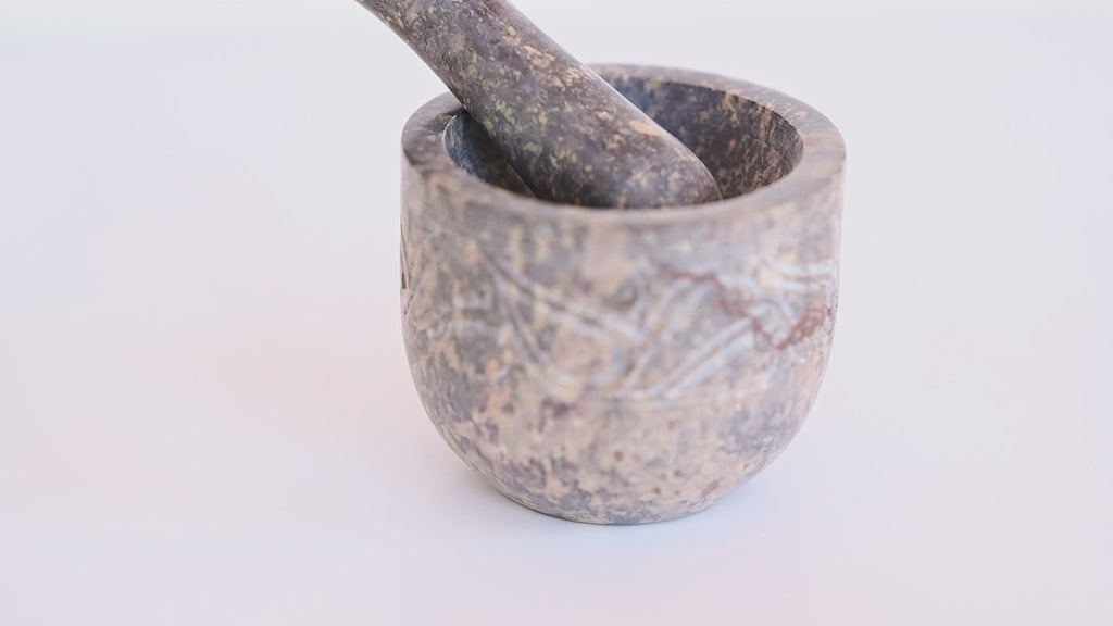Grind herbs and spices in this stunning Pestle and Mortar, carved from a solid piece of Gorara stone. Featuring a hand carved design and polished smooth. This has been handmade from artisans in India.