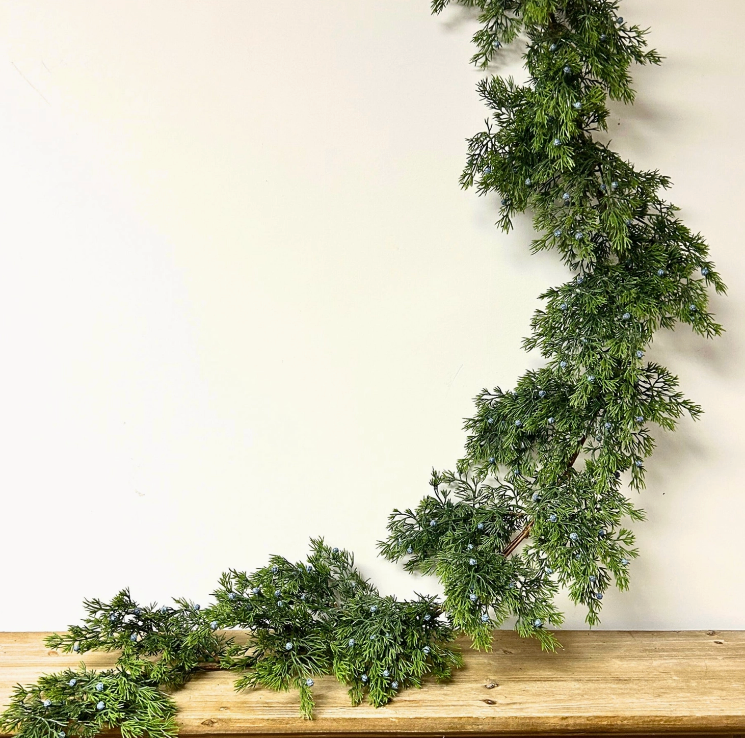 A stunning Juniper Pine garland with small blue berries, this garland has a real touch feel. Beautiful along a mantle or down the center of a table. Thanks to the high quality and lifelike appearance you'll enjoy this garland for years to come.