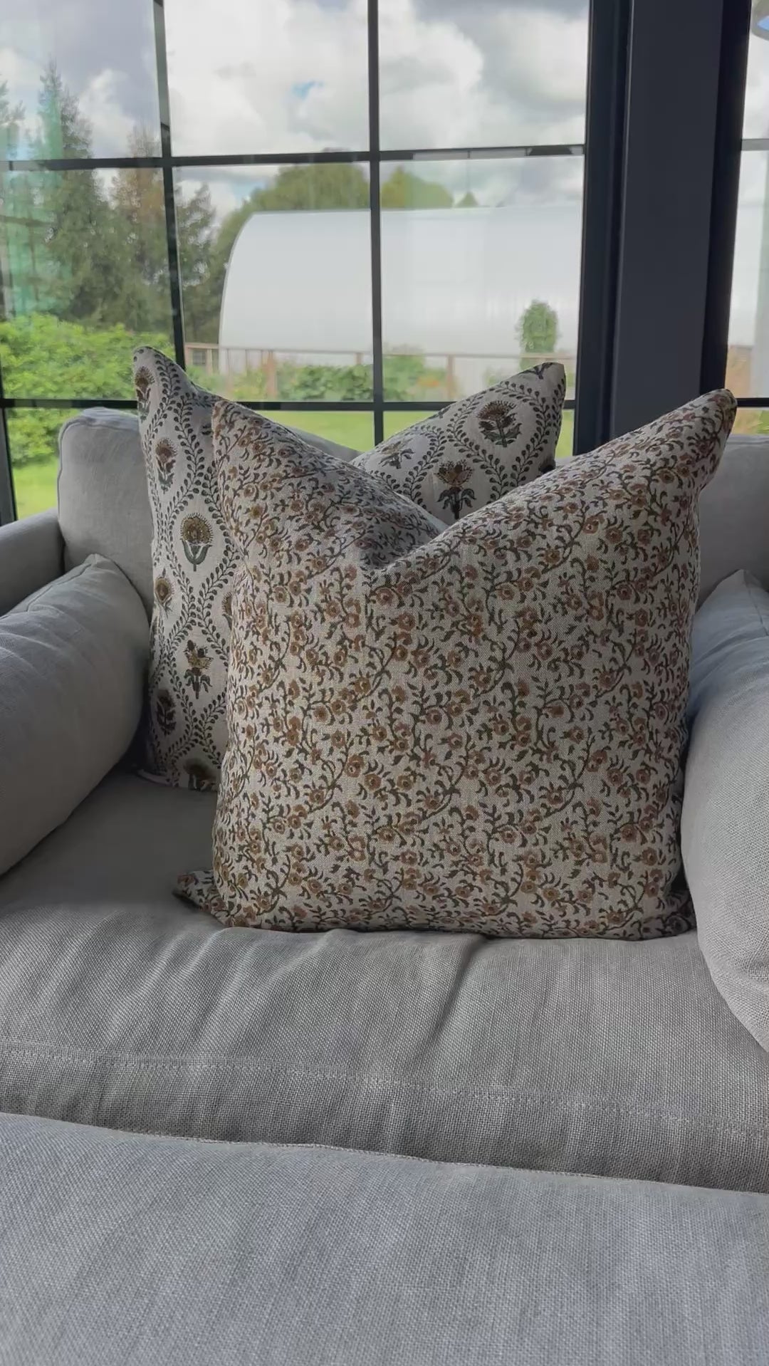 A block print pillow in beautiful shades of muted tans, mustard yellows and green. This pillow is the perfect addition to any fall decor but we love it year round in a traditionally styled space.