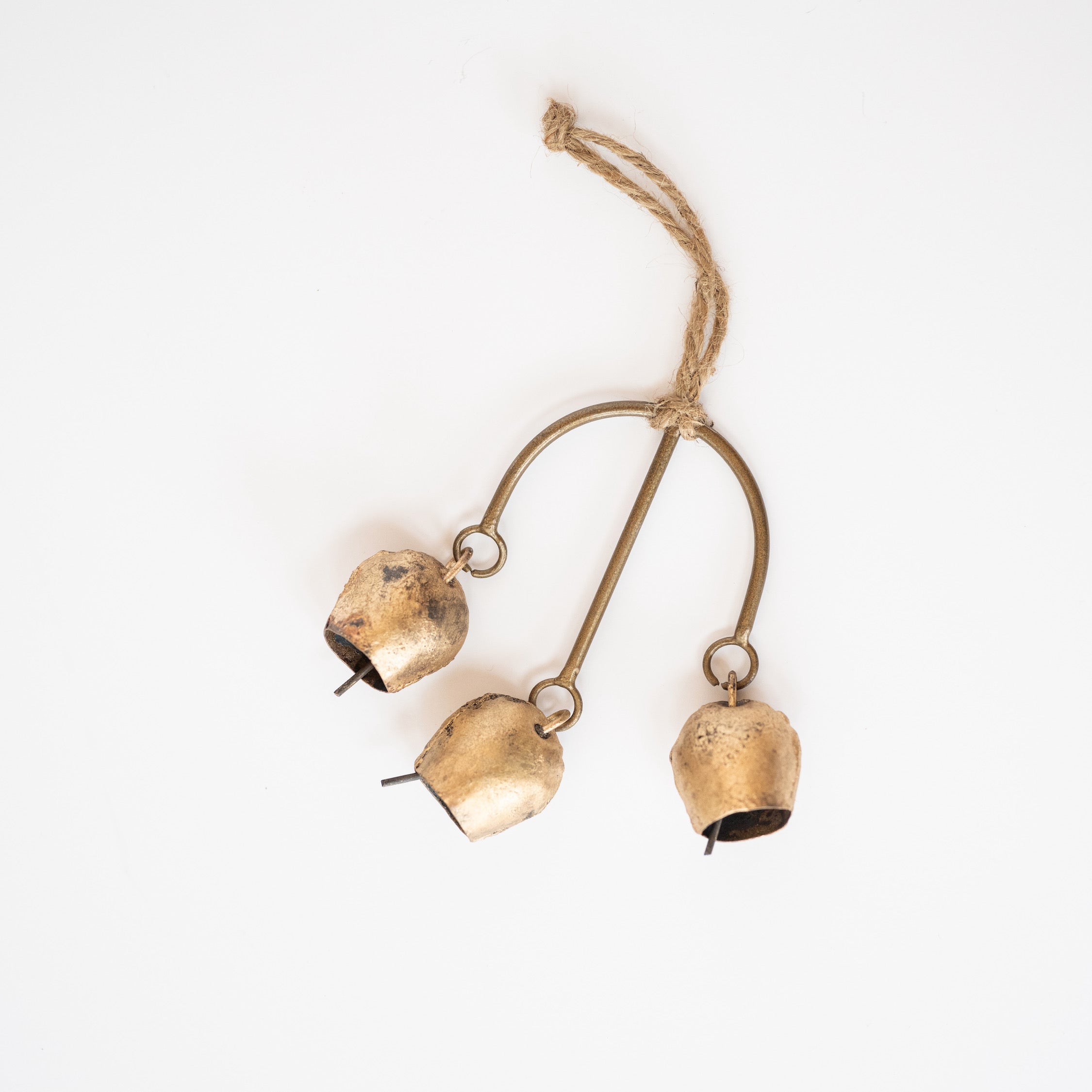 A smaller sized wind chime with a three pronged style, this chime features 1" wide bells. The bells have been coated in copper and hand tuned, which means they will sound good and look good hanging outside. They can also be displayed inside the home, hanging on a wall or from a small stand on a shelf.